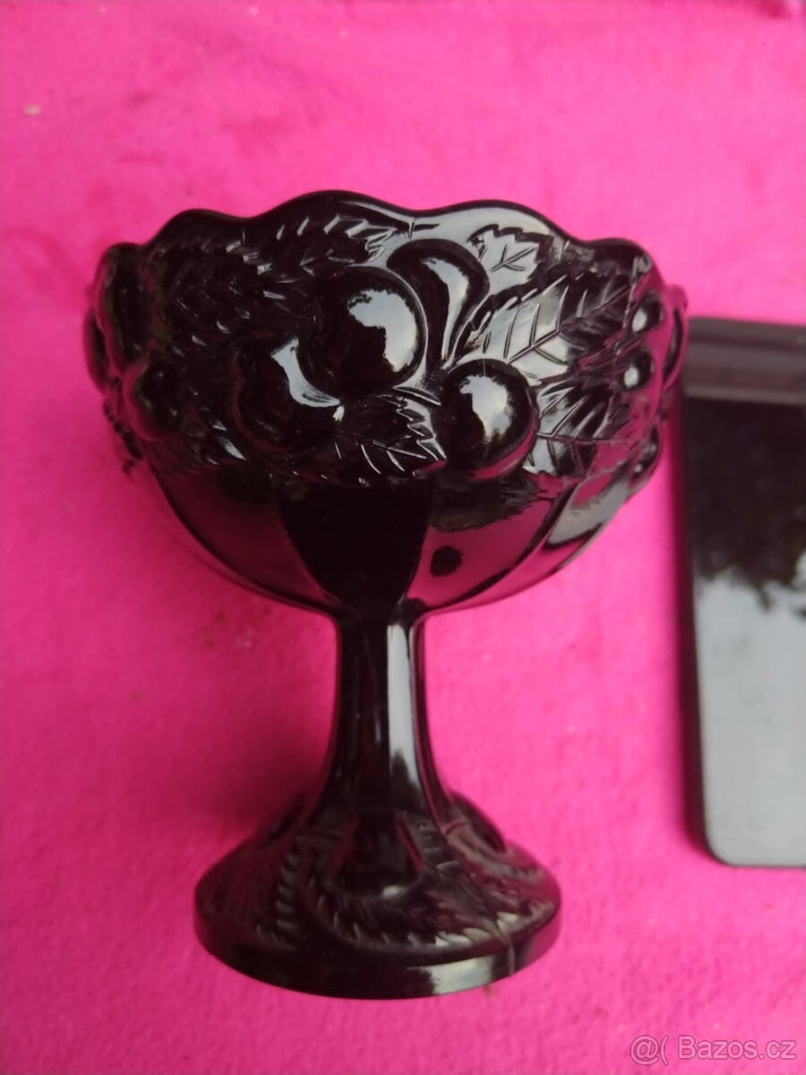 Nabízím skleněný pohár - černé sklo, motiv třešně. Mobilní telefon nenabízím - je na fotce kvůli cca rozměrům sklenice. Praha 10