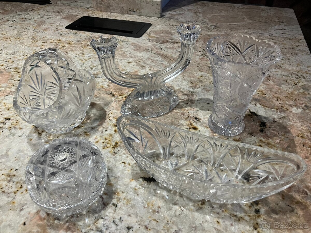 Prodám broušené sklo. Lze rozprodat po částech či najednou.