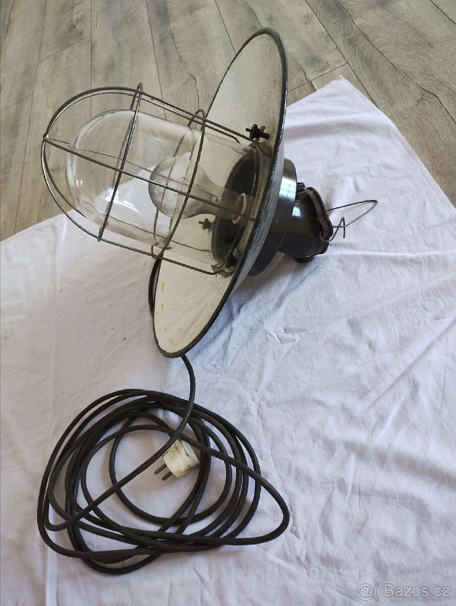 Industriální lampa Elektrosvit - [1.11. 2025]Retro kovové světlo se smaltovaným stinidlem.