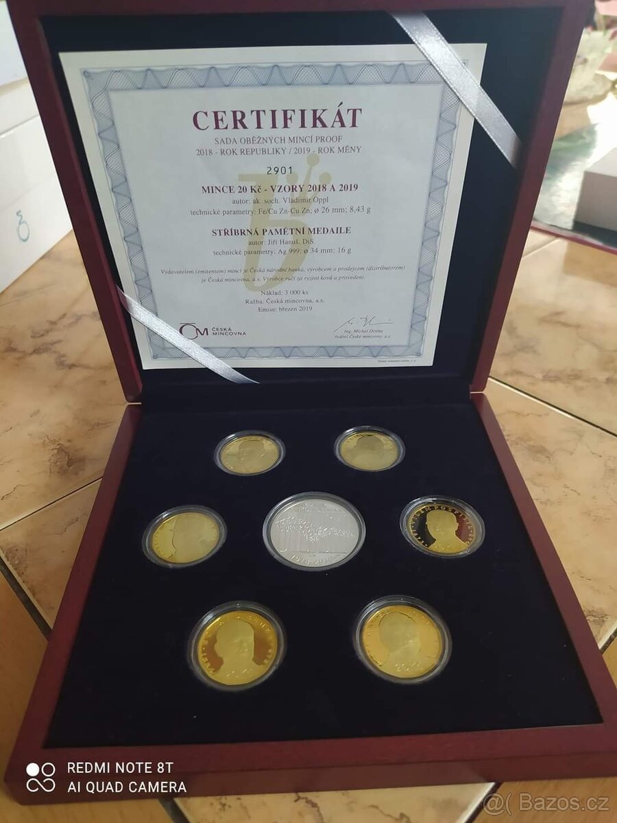 Nabízím k prodeji sady 20Kč,kvalita Proof v dřevěné etui.