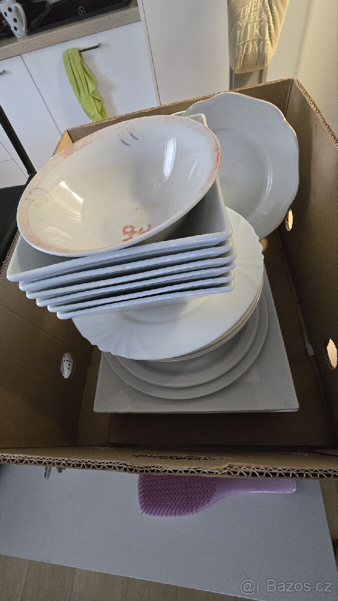 Prodám talíře misky s důvodu stěhování. Cena je za všechno co je v krabici.