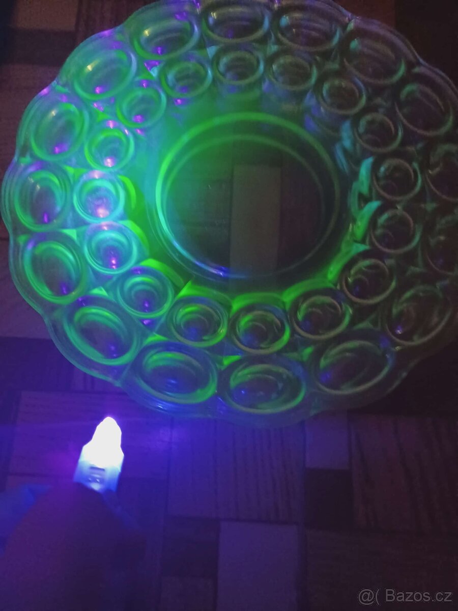 Retro Velké skleněné hutní podnosy z Uranového skla .V pěkném stavu.Cena za 1ks:600kč.Vhodné na vánoční cukrový i chlebíčky.Pěkný stav.Zásilkovna nebo osobní převzetí..