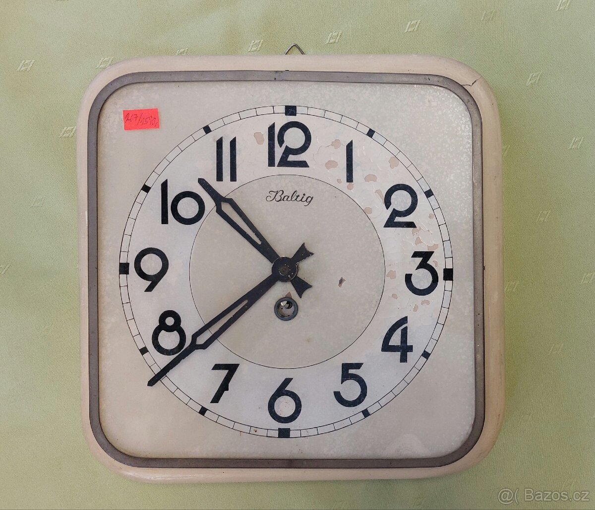 Prodám staré funkční kuchyňské hodiny zn. Baltig. Rozměr 27cm x 27cm.