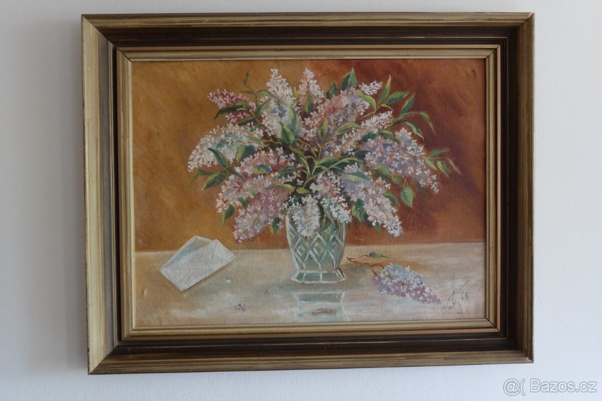 rozměry plátna 77 x 57 cm, rozměry s rámem 98 x 78 cm,