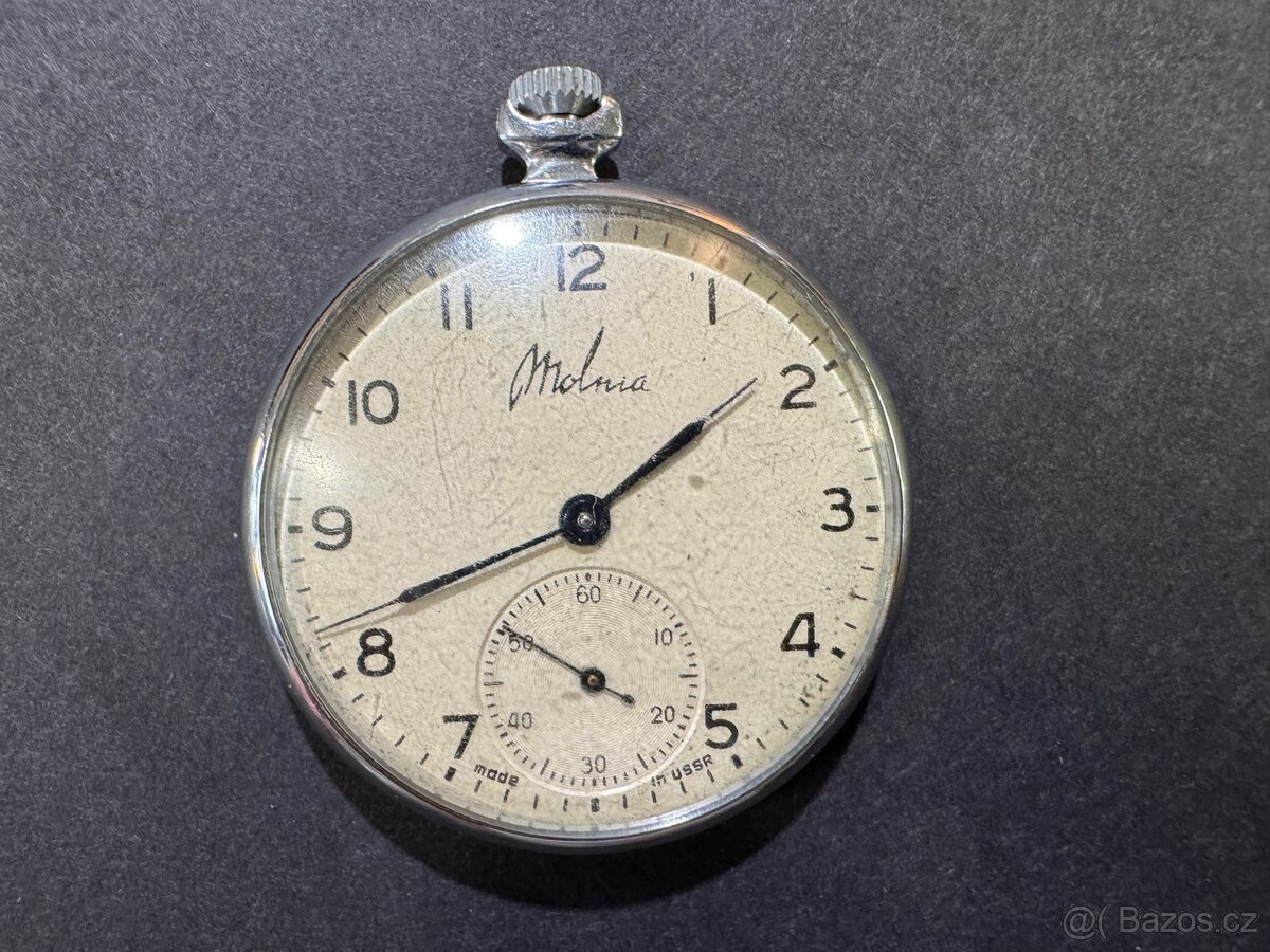Hodinky kapesní Molnija (Молния) průměr 43 mm,funkční,natahovací,bez závěsu