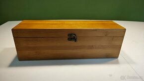 Prodám novou dárkovou krabici na víno z bambusu, bez vína, s příslušenstvím. Příslušenství nebylo nikdy použito. Původní cena s vínem 1500 Kč. Rozměr krabice 38 x 11 x 12,5 cm.