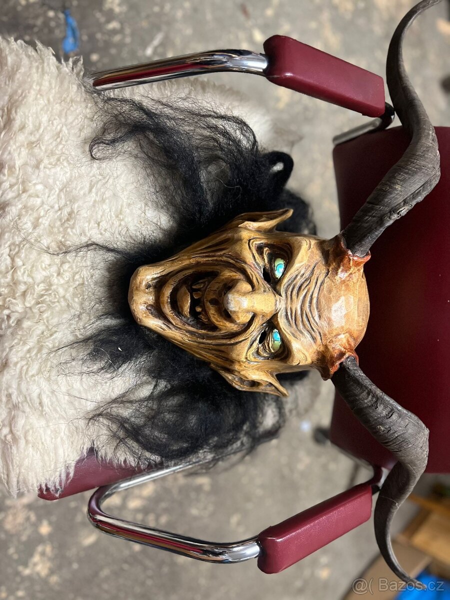 Maska: je spíše na menší hlavu ( teenager), je z alpské borovice, bíle svítící oči