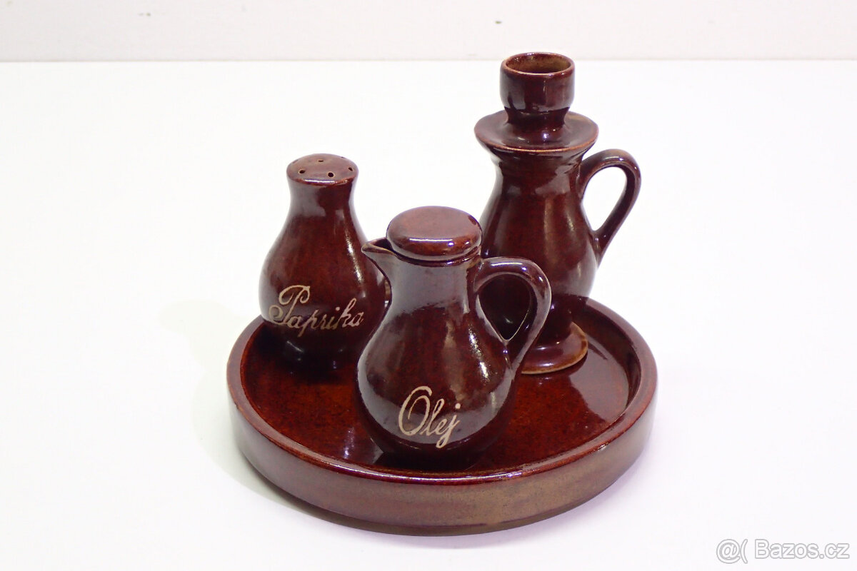 Prodám keramický set - svícen, karafa a kořenka - jinak stav viz foto. Prodávám ze své soukromé sbírky.