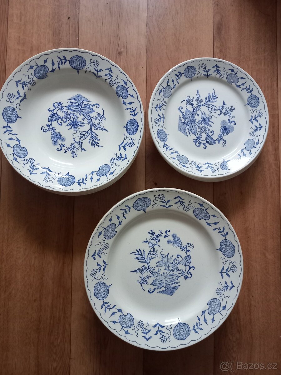 Sada talířů.Dezertních pouze 5 kusů a 1 je slepovaný.