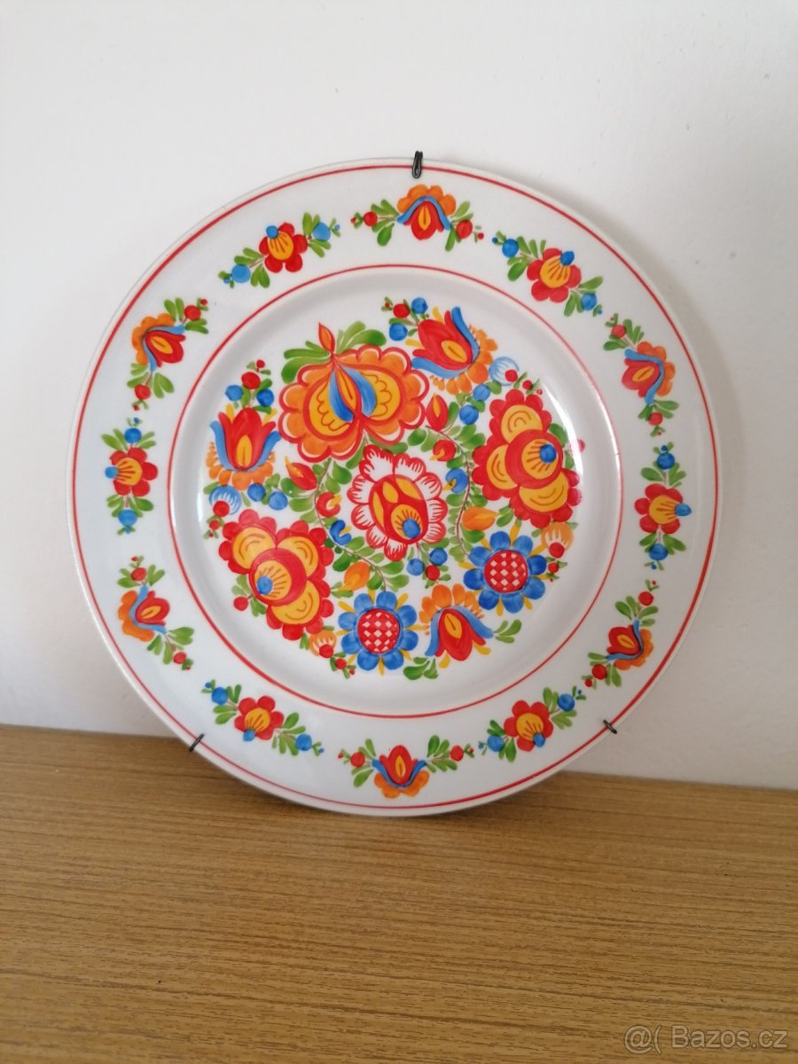 Talíř zn. Ditmar-Urbach, průměr 23cm, ručně malovaný, talíř bílý a černý. Decentně zpracované uchycení na pověšení na zeď. Talíře mám 40 let pověšené nad jídelním stolem, opravdu krásné, nepoškozené.
