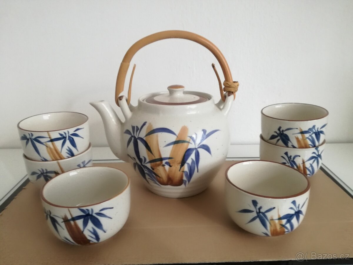 čajový servis, konvice plus 6 hrníčků, bezvadný stav