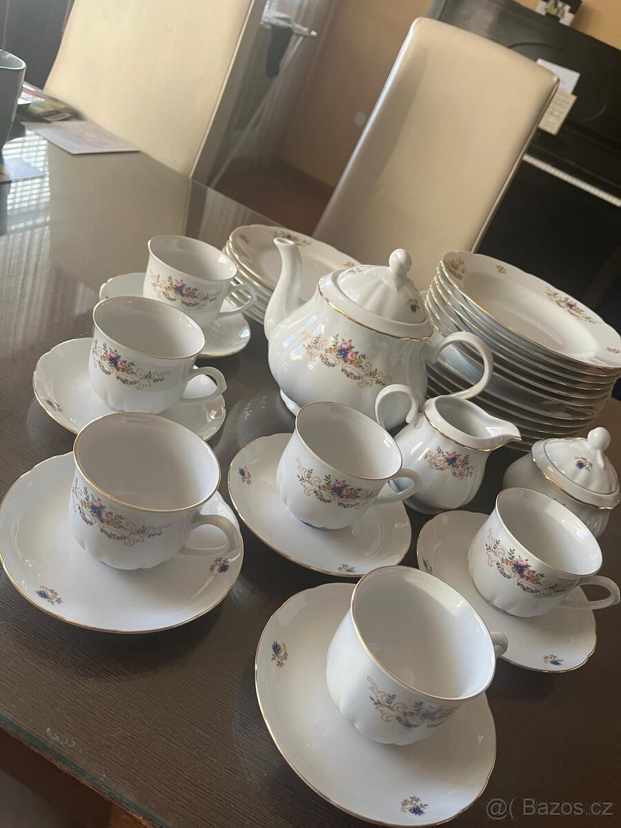 6x podšálek, 1x cukřenka, 1x konvička na mléko, 1x konvice na čaj nebo kávu