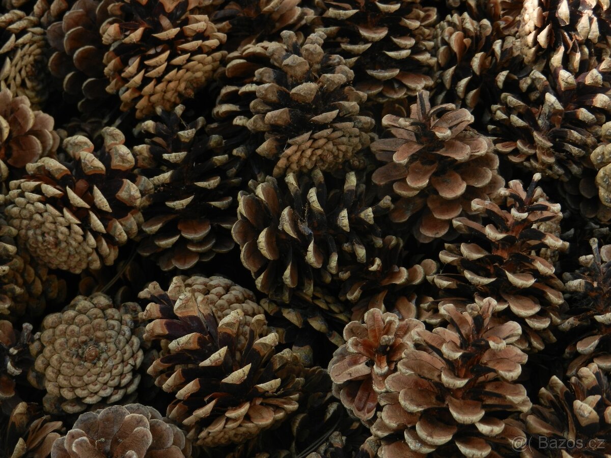 Velké šišky k dekoraci ( výška 8 cm ). Bal. 500 g - je cca 20 ks šišek.