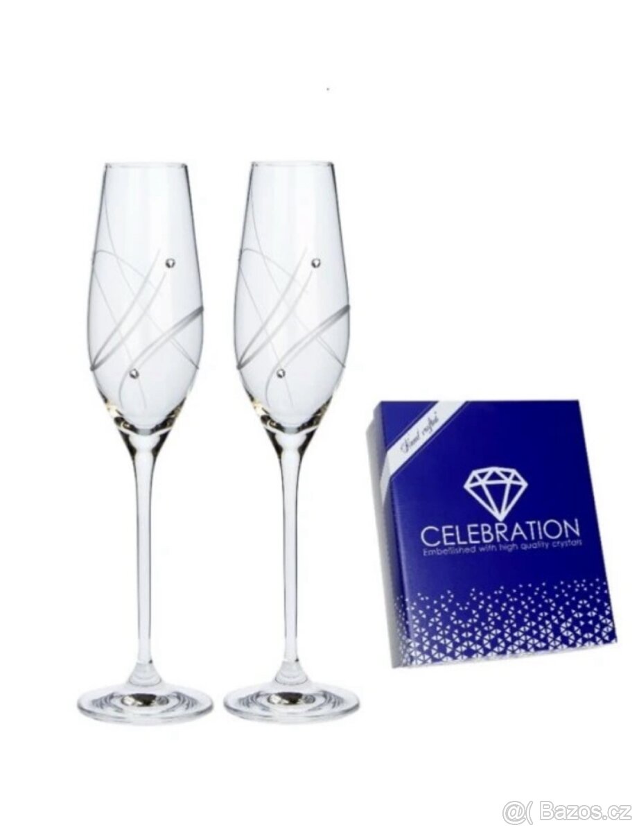 Sada dvou luxusních sklenic na sekt z bezolovnatého křištálového skla ozdobené českými originálními krystaly Swarowski.
