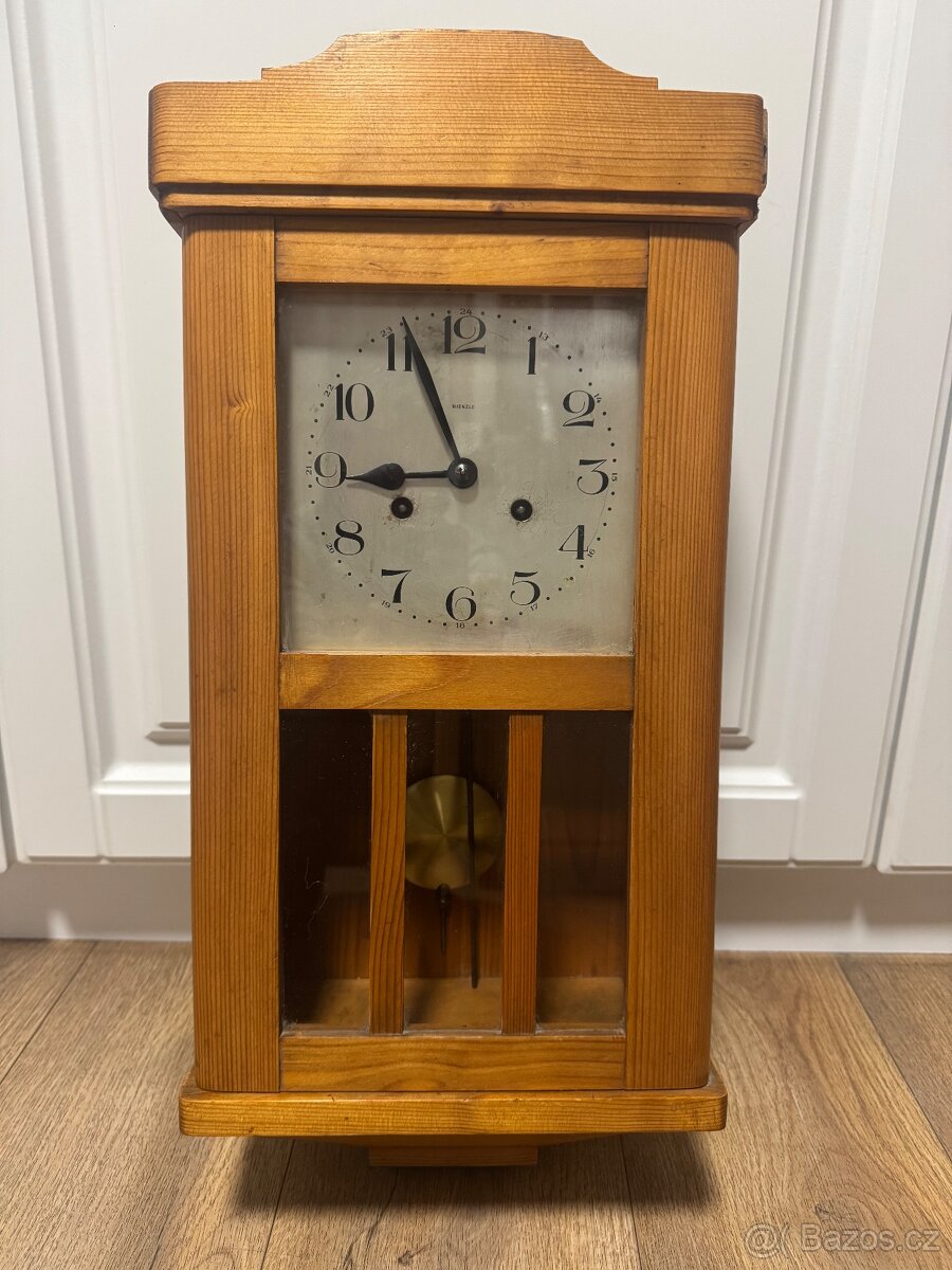 Starozitne nastenne hodiny pendlovky - [20.12. 2025]K dispozici 2 klice, bezi, ale potrebuji udrzbu.