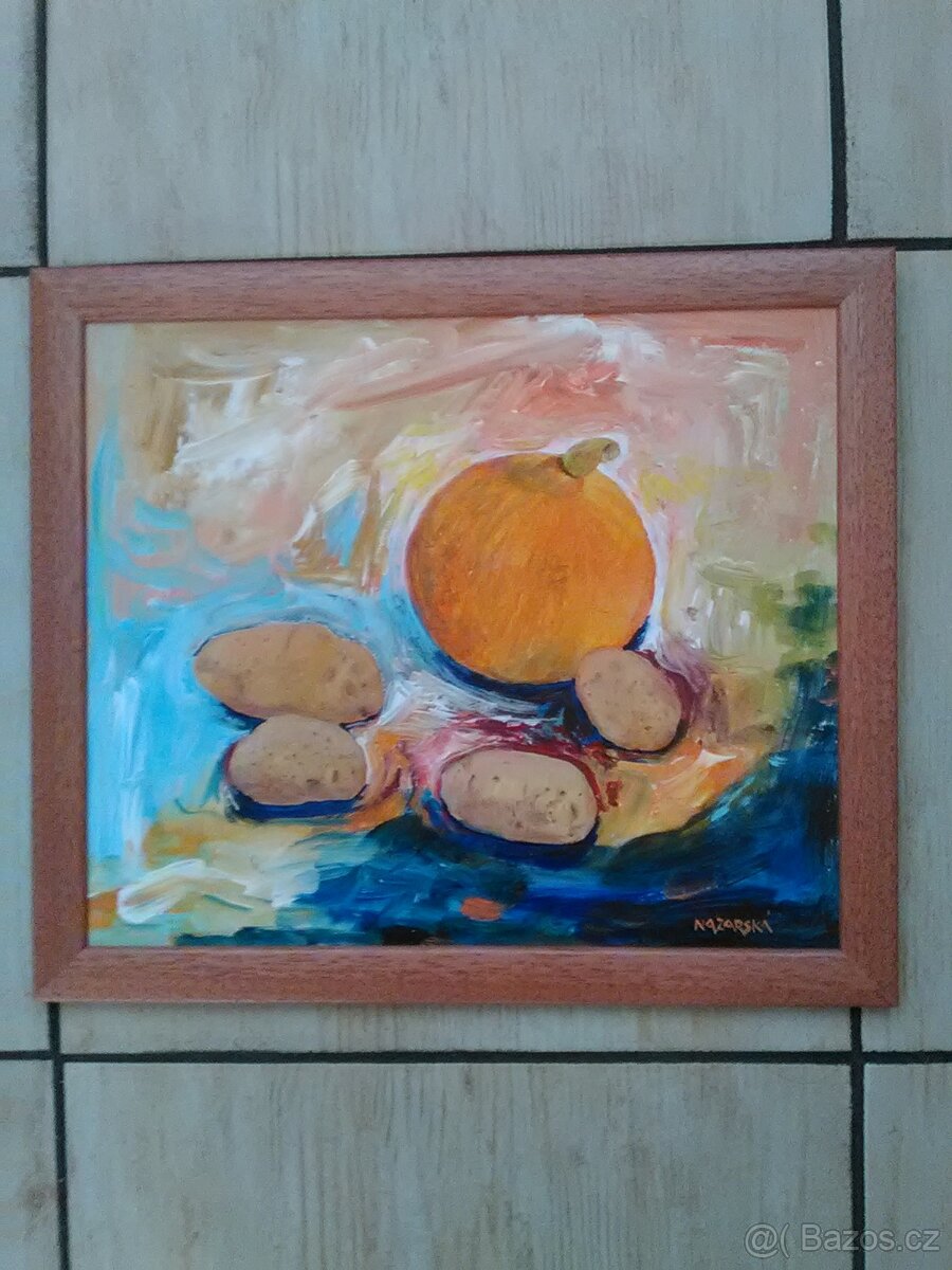 Akryl na sololitu, rozměr : 31 x 27 cm, rám 2,5 cm, světle hnědý