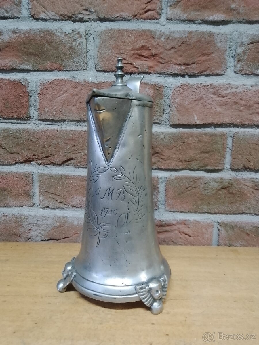 Prodám starožitný cínový korbel,ve velice zachovalém stavu. Cena 2.900,- Kč.