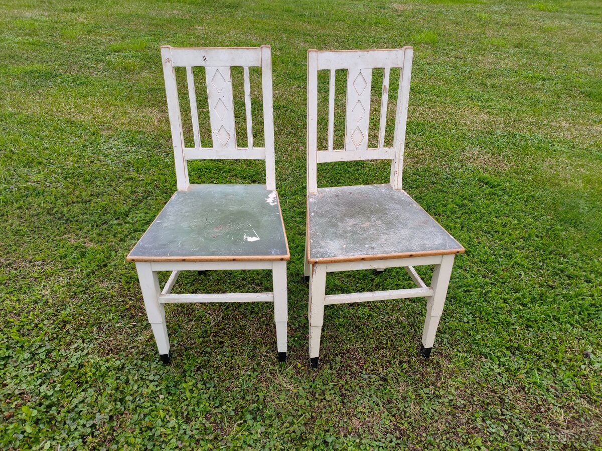 Starě bílé celodřevěné židle