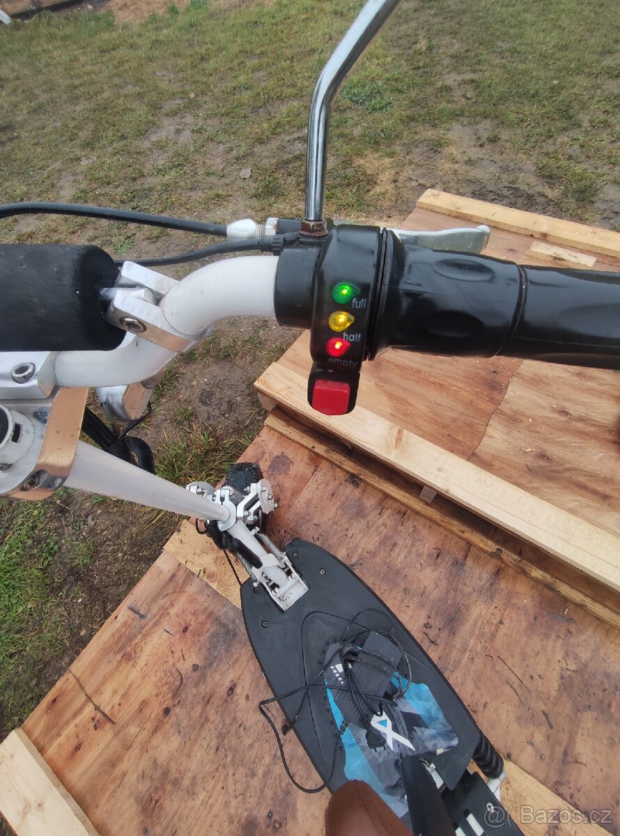 Prodám koloběžku Flux Freeride 2 rychlostí 48V 1000w Baterie 4 krát 12V 12ah. Koloběžka údajně jezdila toto Jaro Léto do obchodu a údajně hospůdky. klíček reaguje nabíječka při zapojení ok funkční Plyn reakce ano Motor točí. Přepínání rychlosti funkční stav baterií nezjištěno prý funkční neřeším netuším . Jinak třeba nové baterie všechny nejsou tak drahé popř šikula sám udělá sestavu nebo nahradí zdroj atd. . Pěkné sedlo Nosnost 110kg volnoběžka lze použít jako normální koloběžku odrážení. Brzdy funkční spínače klíček reaguje funkční. Nejlépe osobní odběr okolo komína dovezu přiblížím vše po telefonu domluvíme. Top Cena jen 3999kč