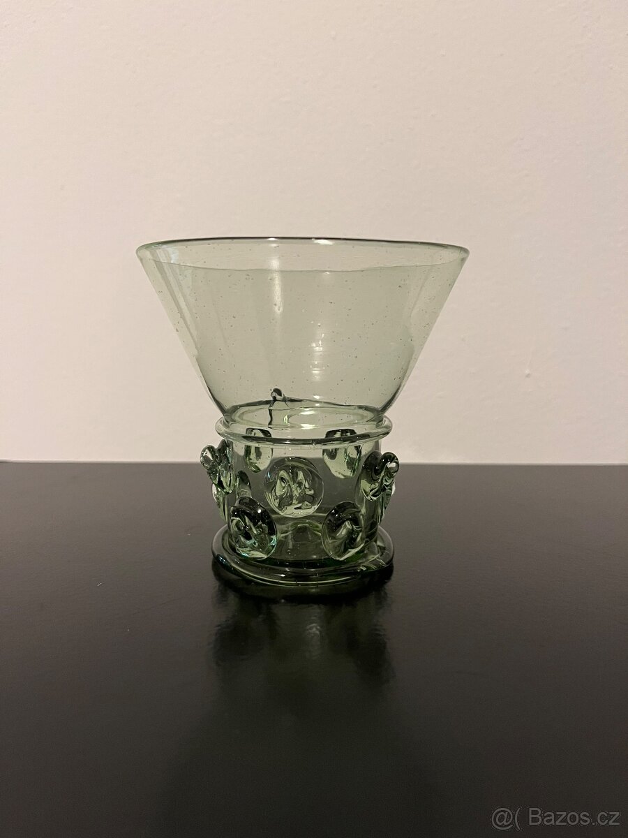 Sklenice lesní sklo - [31.12. 2025]Nízká sklenice na víno z lesního skla, výška 7,8cm, bez poškození