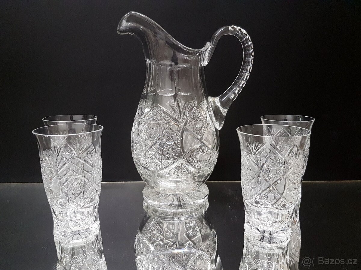 Karafa a číše ruční výroba - [5.11. 2025]Nádherné severo-české sklo. Original ruční výroba. Imitace středověkého skla. Nádherná zelená barva a detailní prvky.Rozměry na foto.
