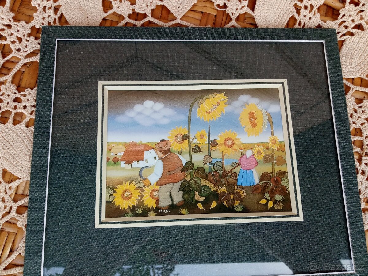 Stevo Čubela - Podzim se slunečnicemi (1980). Zapaspartovaný tisk, 26 x 22 cm.