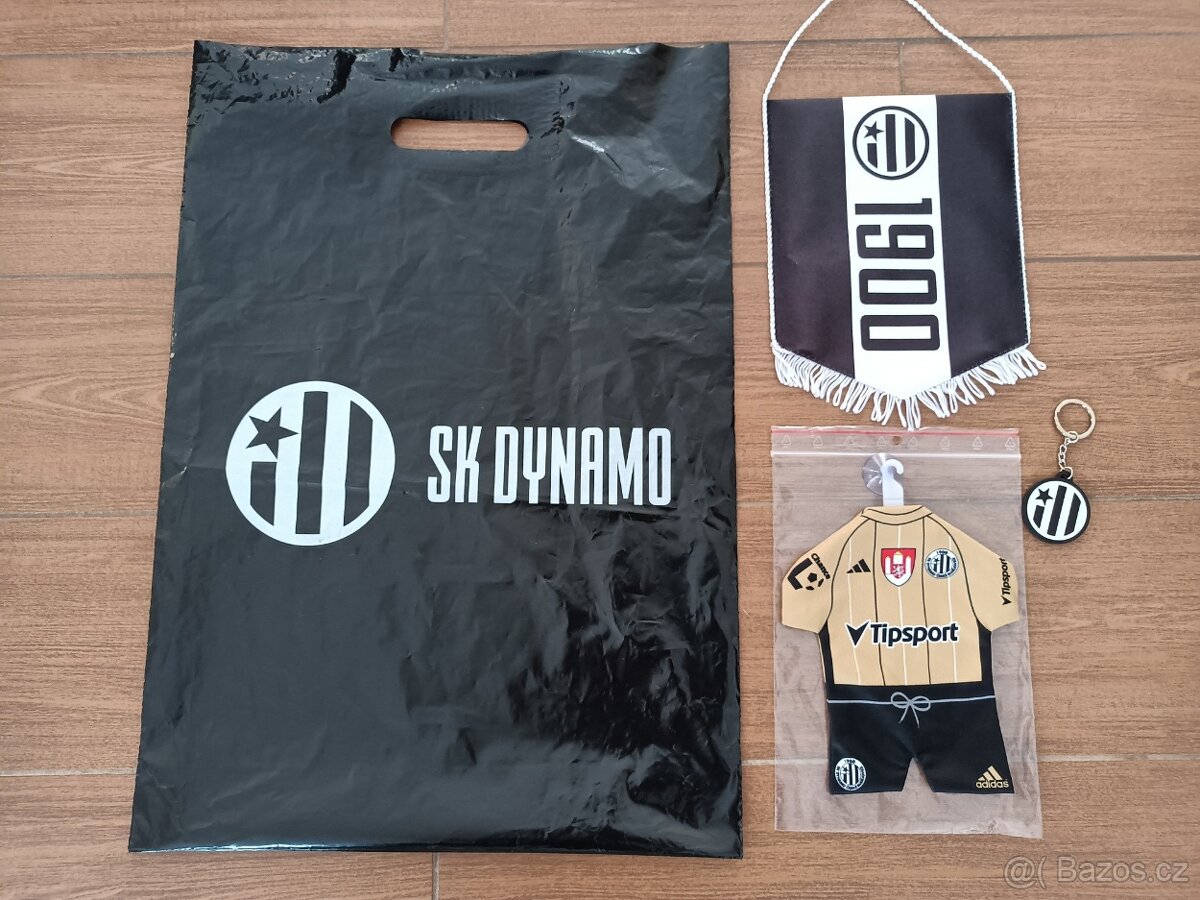 Sada obsahuje: Klubovou vlaječku, hráčský minidres SK Dynamo České Budějovice pro sezónu 2024/25 ve venkovní variantě, klíčenku z pevného plastu s klubovým logem + igelitovou taška.