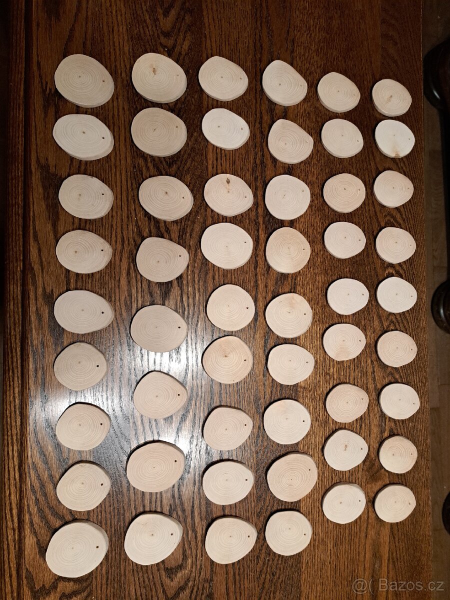 Dřevěné,šikmo řezané,broušené plátky-kolečka z větví listnatých stromů do 90 mm průměru