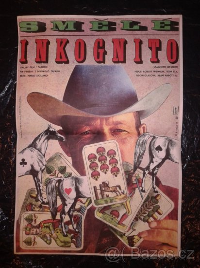 SMĚLÉ INKOGNITO(Alleluja e Saratna figli diDio), A3 (42 x 30 cm).Autor: Vaca, Karel. Původ filmu: Itálie.Rok vzniku plakátu: 1979.Režisér: Mario Siciliano. Žánr filmu: Westerny. Plakát jednou přeložený. Stav výborný. Pošlu na dobírku nebo cena + poštovné na účet. Neváhejte, dokud je to v nabídce a podívejte se na moje další inzeráty. Nevolejte, ale pište na e-mail.