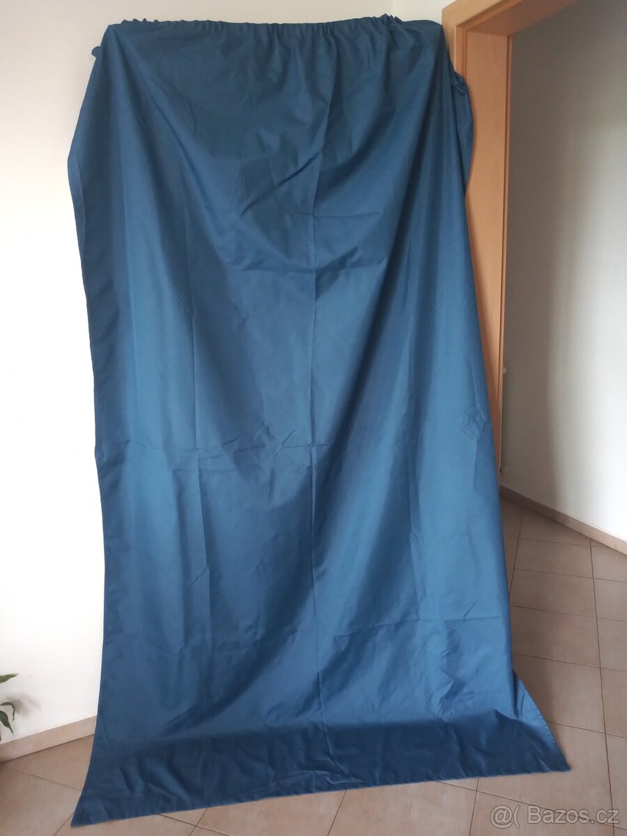 Prodám jednou použité záclony a závěsy( modré a z druhé strany bílé,viz foto) 2 ks a záclony 2 ks jsou hotové s řasící páskou.