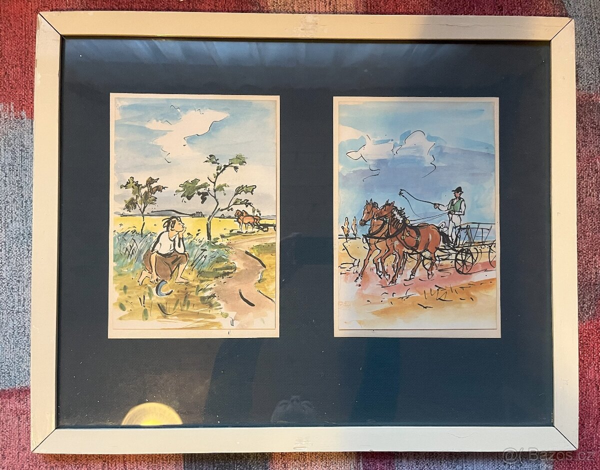 Prodám tyto obrázky od Vojtěcha Sedláčka. Stav viz. foto. Na zadní straně razítko z Orlické galerie - Rychnov nad Kněžnou. Celkem mám 10 kusů těchto dvojobrázků. Podrobnější fotografie zašlu na požádání. Prosím o kontakt pouze e-mailem. Sledujte mé další nabídky. Cena za kus 1 250,-. při odběru všech sleva.