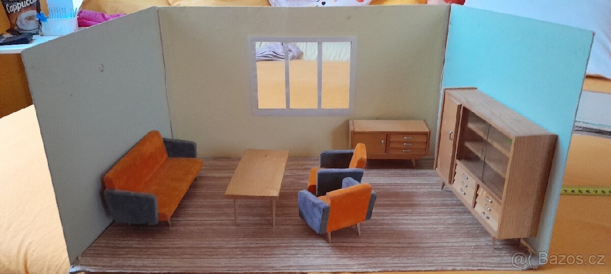 Pokojíčky - kóje ( bez nábytku - nábytek je v jinéminzerátu) pro malé panenky, z lisovaného papíru. Tři kusy, koupené v NDR, cca v roce 1972. Velikost kóje - pokojíčku: délka 50cm, hloubka 30 cm, výška 25cm. Rozměry okénka: 16 x 13 cm. Za ty roky jsou drobně poškozené ( ...rohy podlahy, jeden je lepený - z venkovní strany. Viz foto...není divu, využito třemi generacemi dětí. I tak jsou funkční, i hodnotné jako sběratelský kousek...) Cena je za všechny tři.