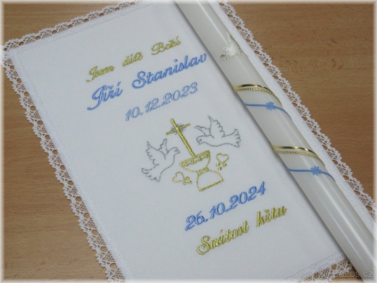 Vyšívané křestní roušky + svíčka