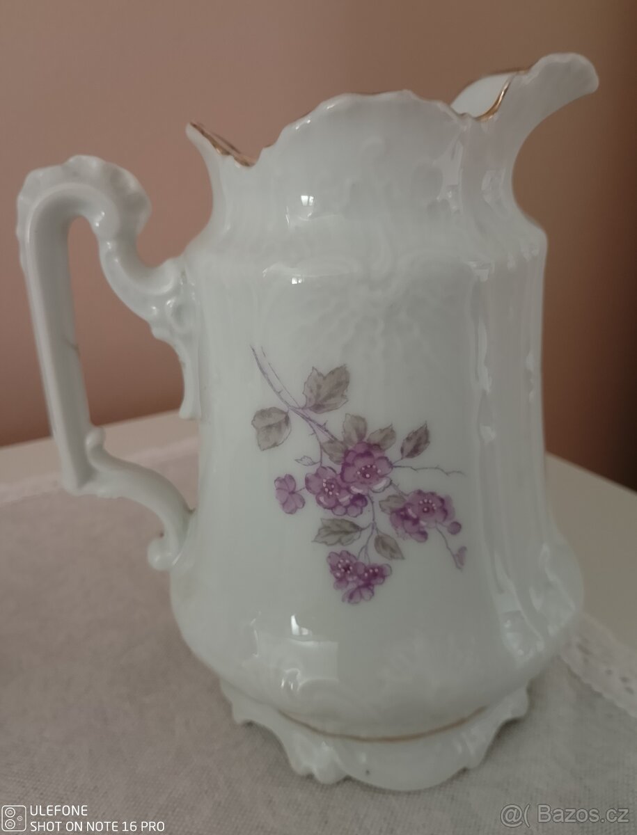 Prodám starožitnou porcelánovou konvici s květinovým motivem, v=16cm, š=11cm