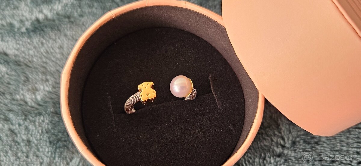 Nový, včetně dárkové krabičky. Medvídek je zlatý a perla říční. Univerzální velikost - ohebná síťovinová ocel.