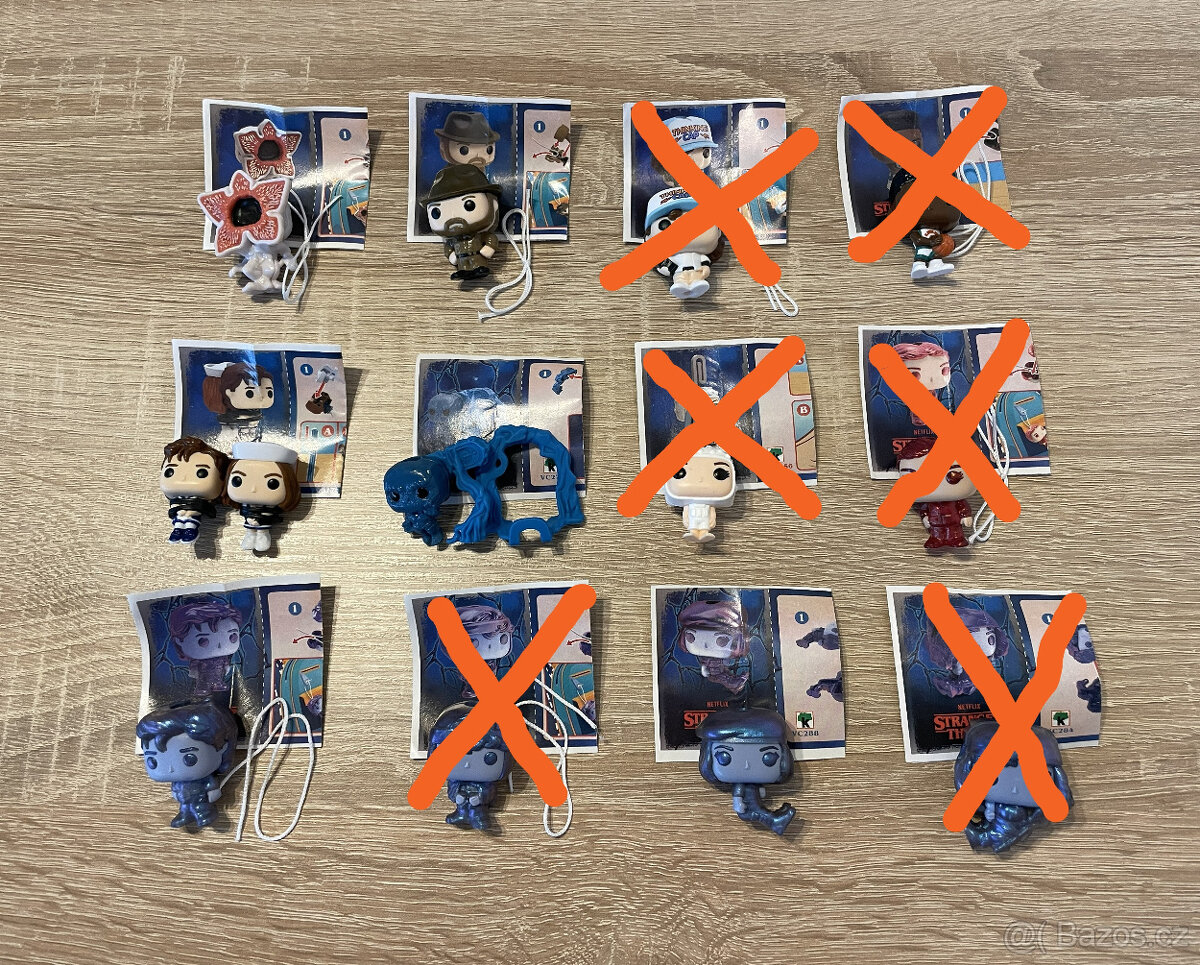 Figurky ze seriálu Stranger things FunkoPop kinder Joy - [10.12. 2025]Prodám tyto FunkoPop figurky ze seriálu Stranger things Lukase, Robin z upside Down, Steve a Robin, Vecnu a Demogorgona na tužku můžu i vyměnit za ty co nejsou zakroužkované a osobní předání.