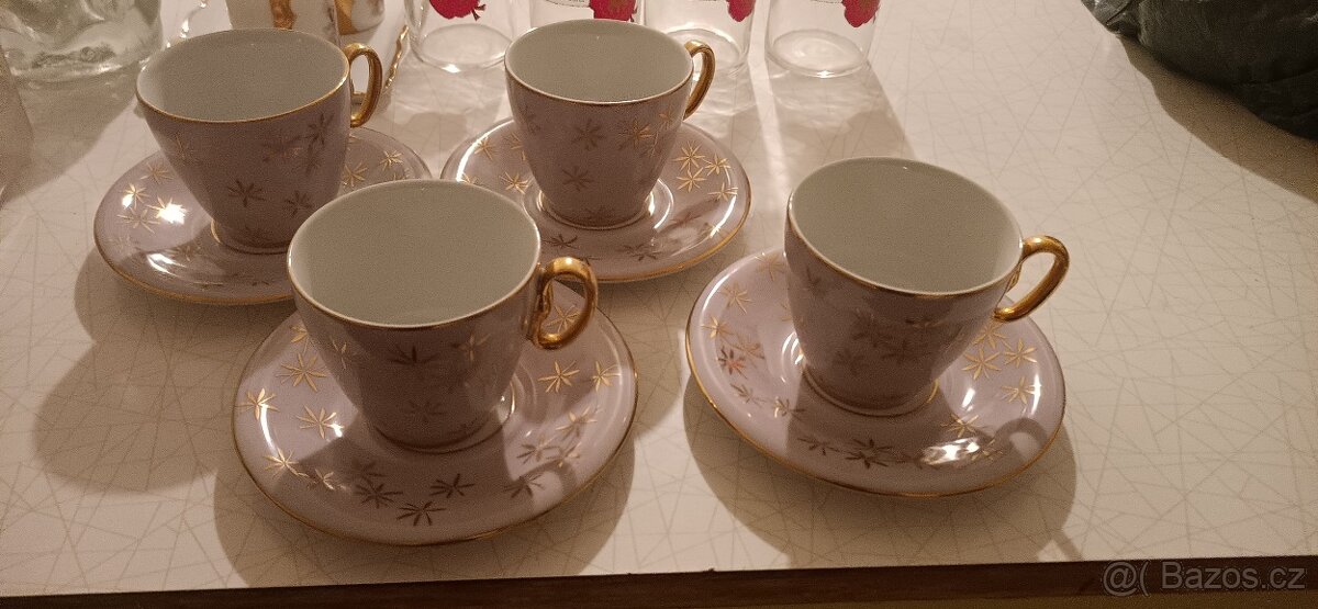 4x vintage hrnek s podšálkem. Made in Czechoslovakia. Značení Victoria a JSK.