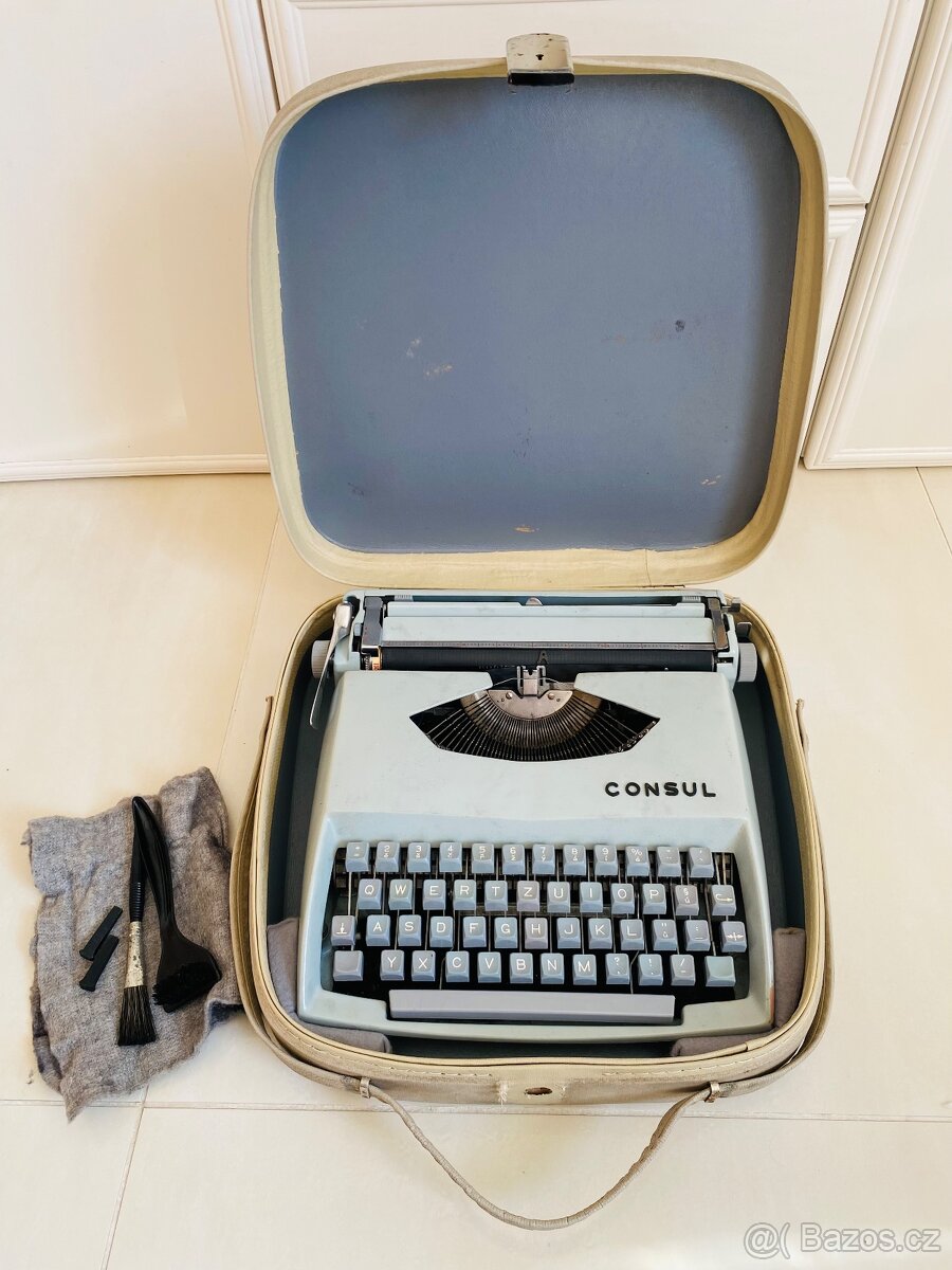Retro psací stroj, funkční. Včetně kufříku a příslušenství, zámek kufříku nefunkční. Osobní odběr Velké Karlovice, popř. mohu dovézt do Prahy.