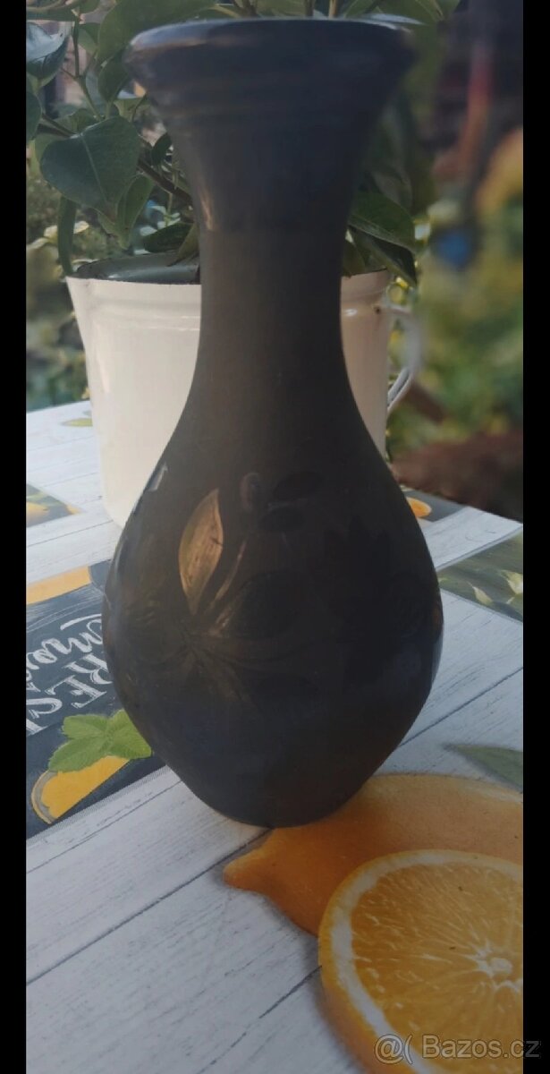 Váza z černé keramiky. Maďarská řemeslná výroba z Transylvánie. Signováno. Maďarsko. Super stav bez oťuku a oštěpků,autor Istavan Fazekas Výška cca 18,5 cm