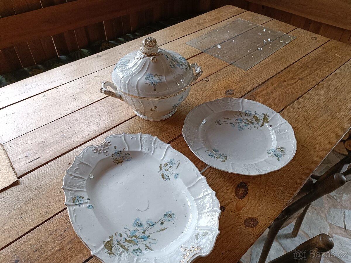 Retro porcelánová mísa, podnos, polévkovou mísu - [5.11. 2025]Nabízím velmi starou porcelánovou mísu s motivem pomněnek 20x20 cm, neponičená 380 Kč. Podnos 41 cm 380 Kč. Terina – polévková mísa 380 Kč. Velký kulatý podnos 380 Kč. Omáčník 250 Kč.