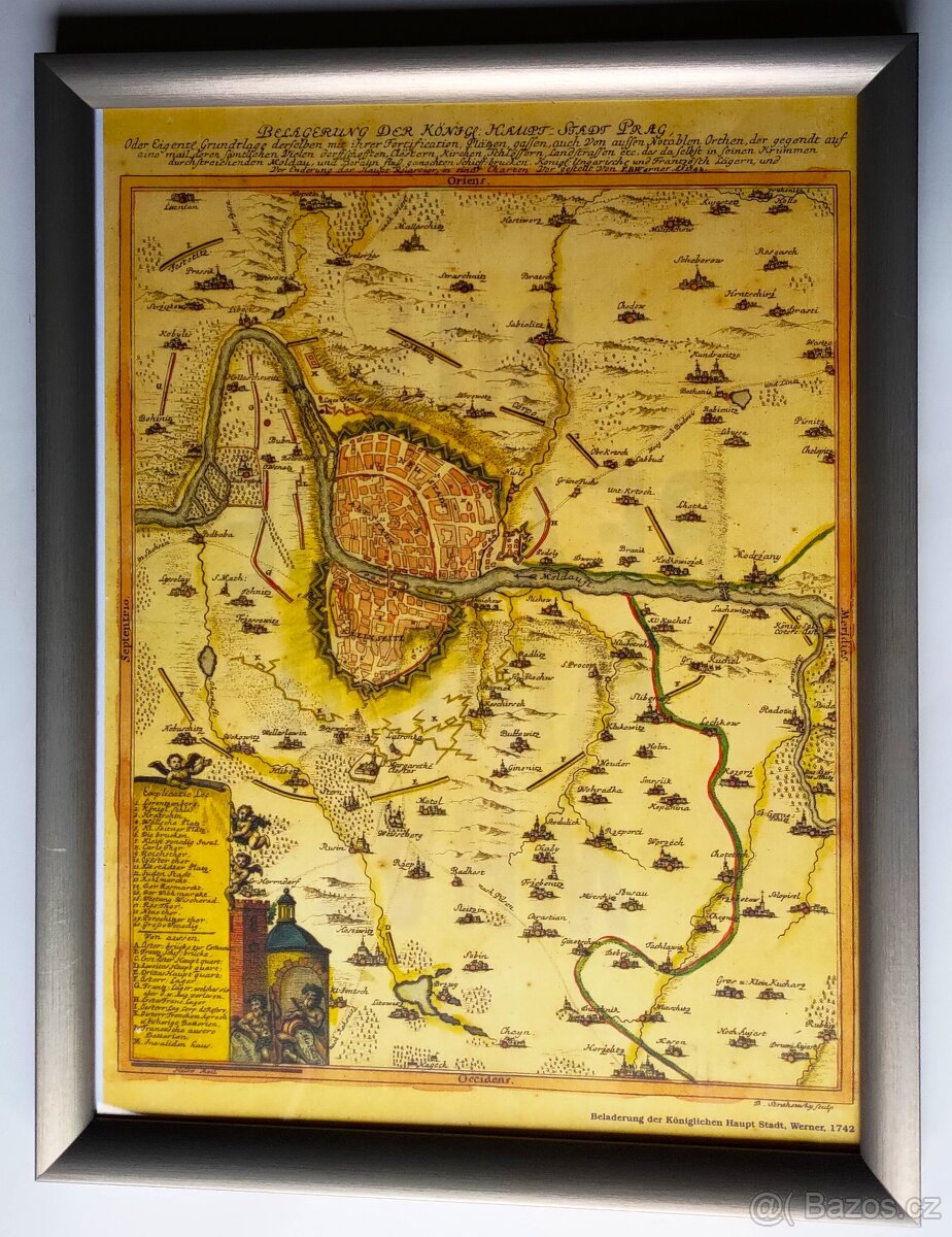 HISTORICKÁ MAPA PRAHY 1742 / obraz 33 x 43cm /