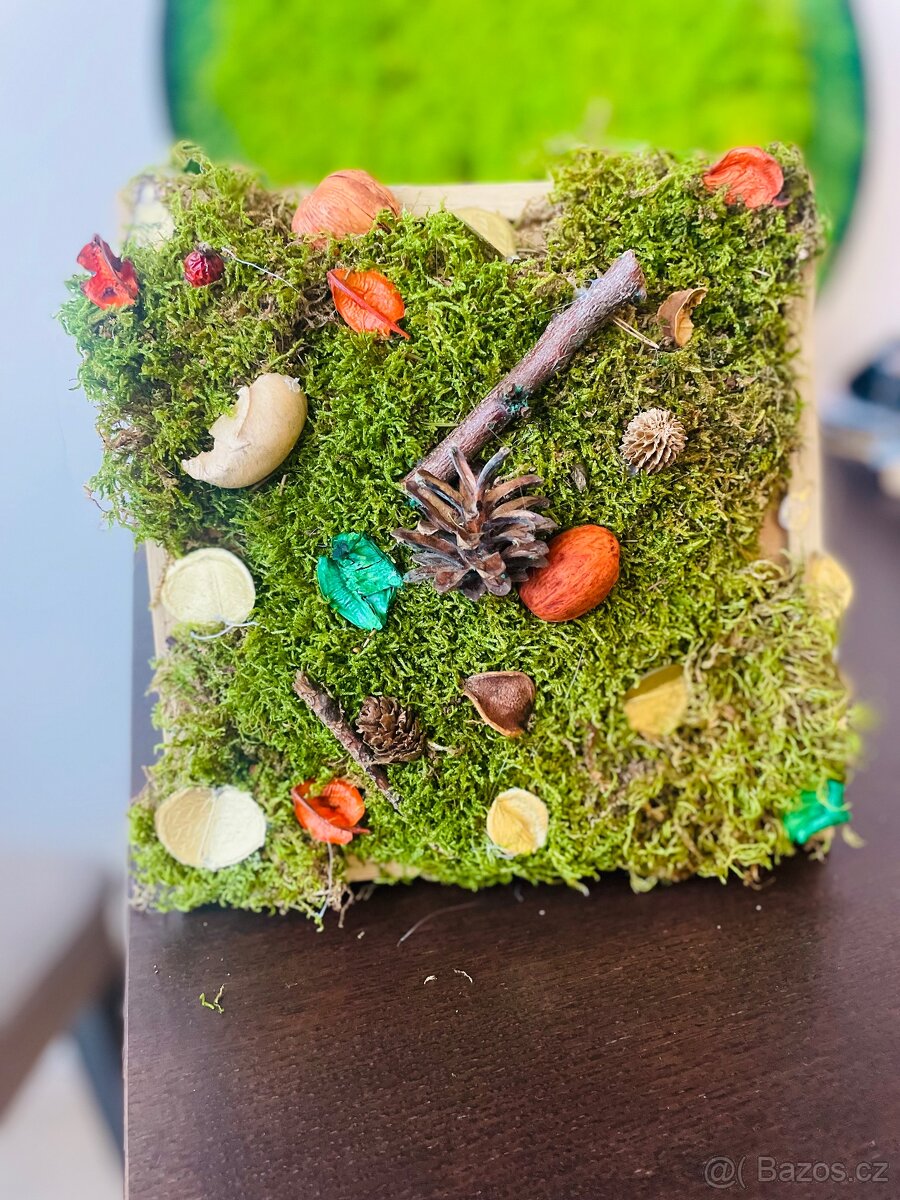 Ručně mnou vyrobený mechový obrázek, velikost 20x20 cm. Krásný dekorační prvek a dárek. Předání Pardubice, mohu zaslat i poštou.