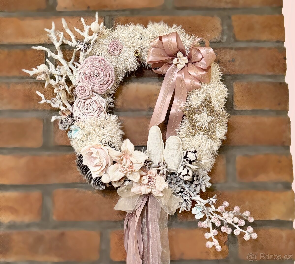 Luxusní Vánoční věnec "Zimní Růže" v pudrových tónech.