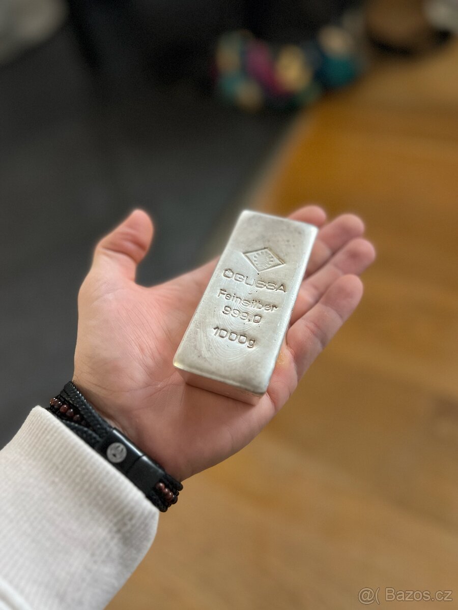 Jde o tento slitek - https://www.oegussa.at/en/shop/produktdetail/feinsilberbarren-1000g , aktuální prodejní cena na eshopu je asi 57850 kč.