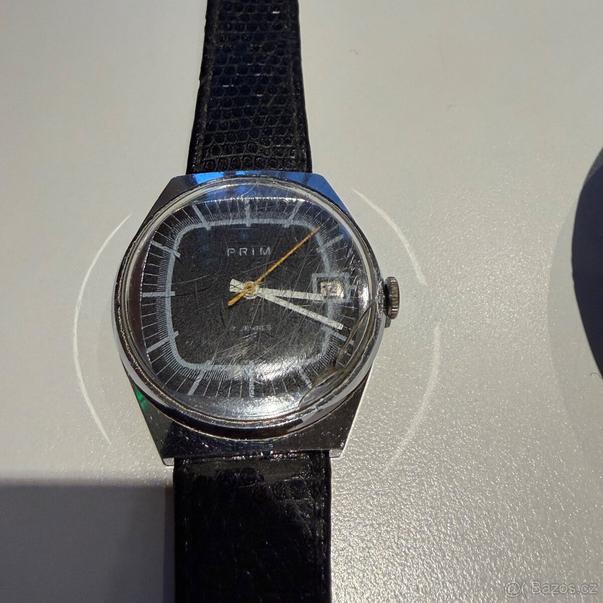 Hodinky Prim - [13.12. 2025]Prodám funkční a seřízené hodinky Prim, 17 kamenů bez řemínku, mechanické