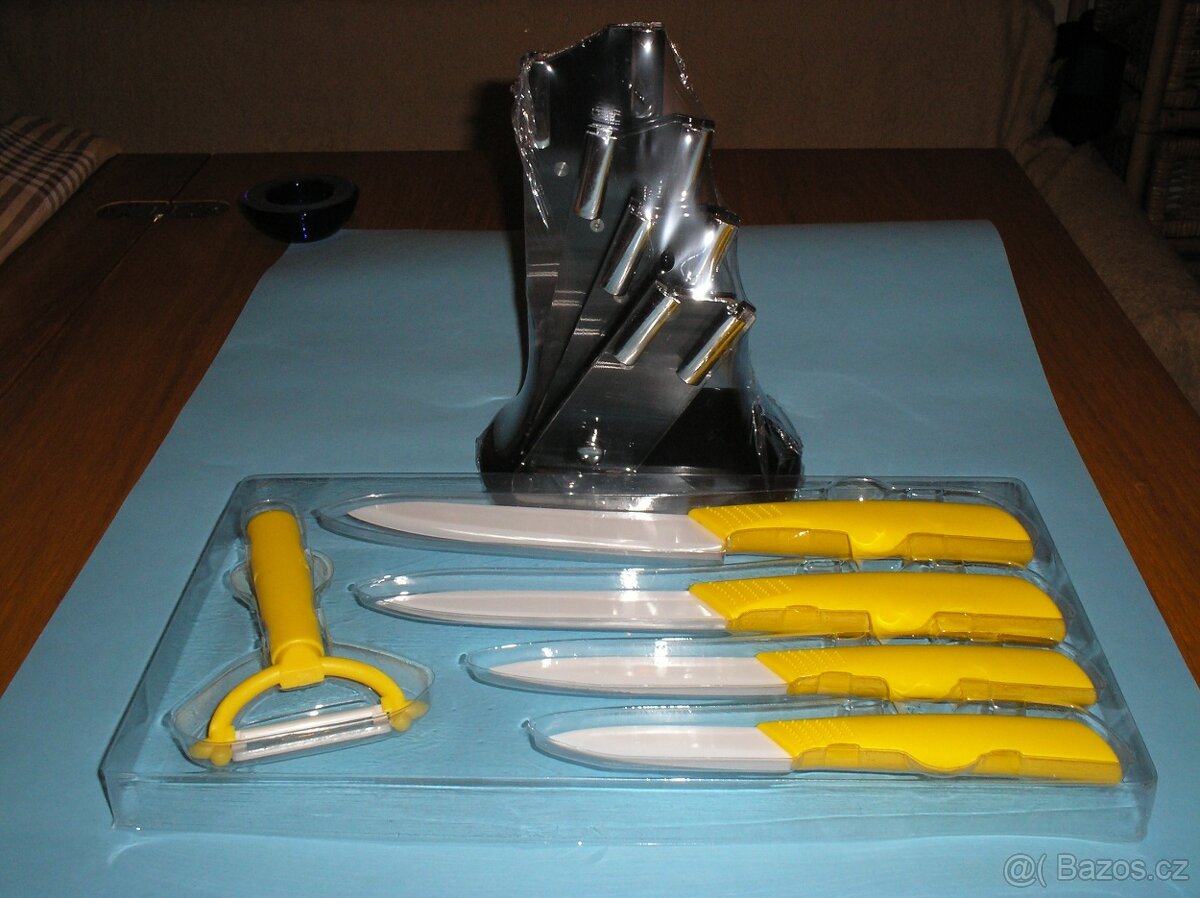 Prodám keramické kuchyňské nože, škrabku a stojan k nim, nepoužité. Poštovné hradí kupující, Osobní předání v N.J., Val.Mezu, Ostravě, příležitostně i Praze, jinak dle možnosti. SMS NE, jen volat-po 19hod., nebo přes kontaktní formulář.