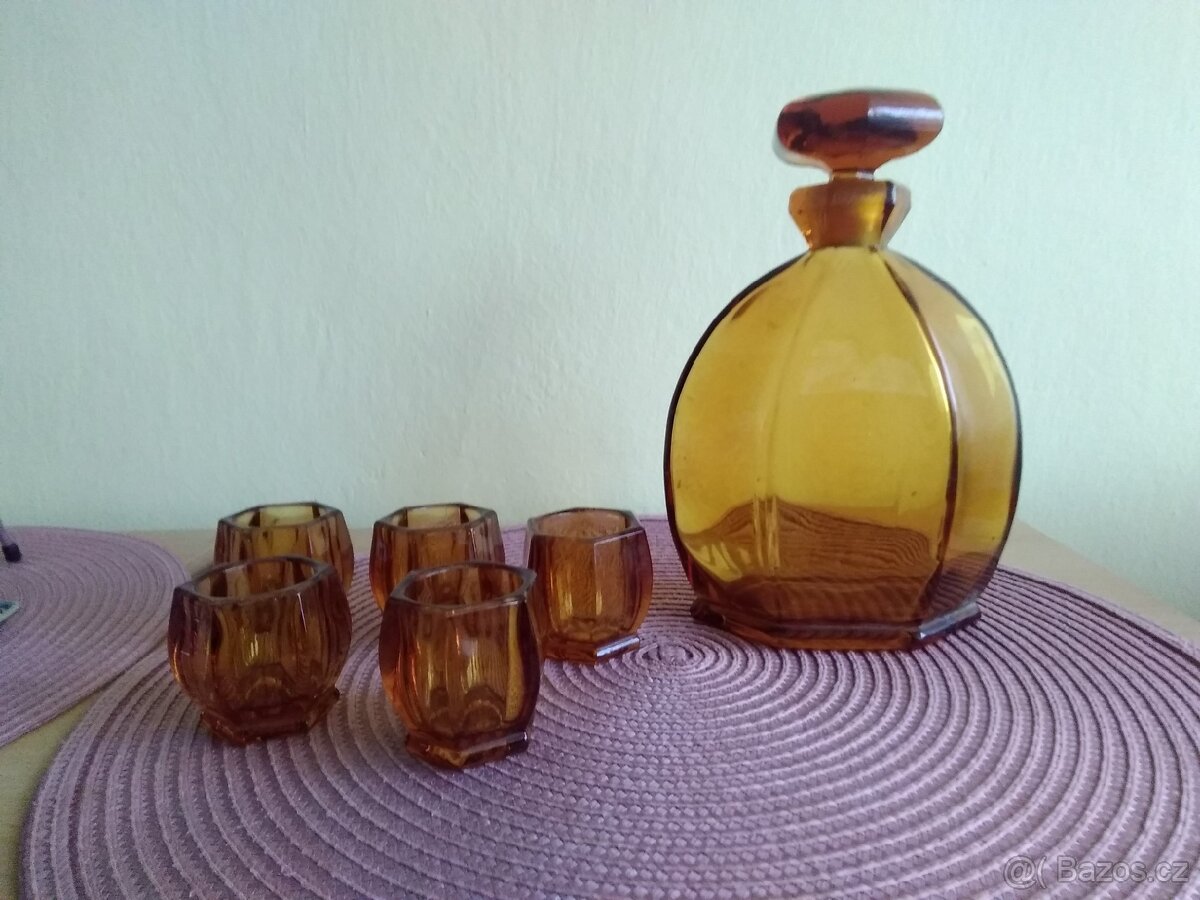Karafa+5 skleniček z hnědého skla