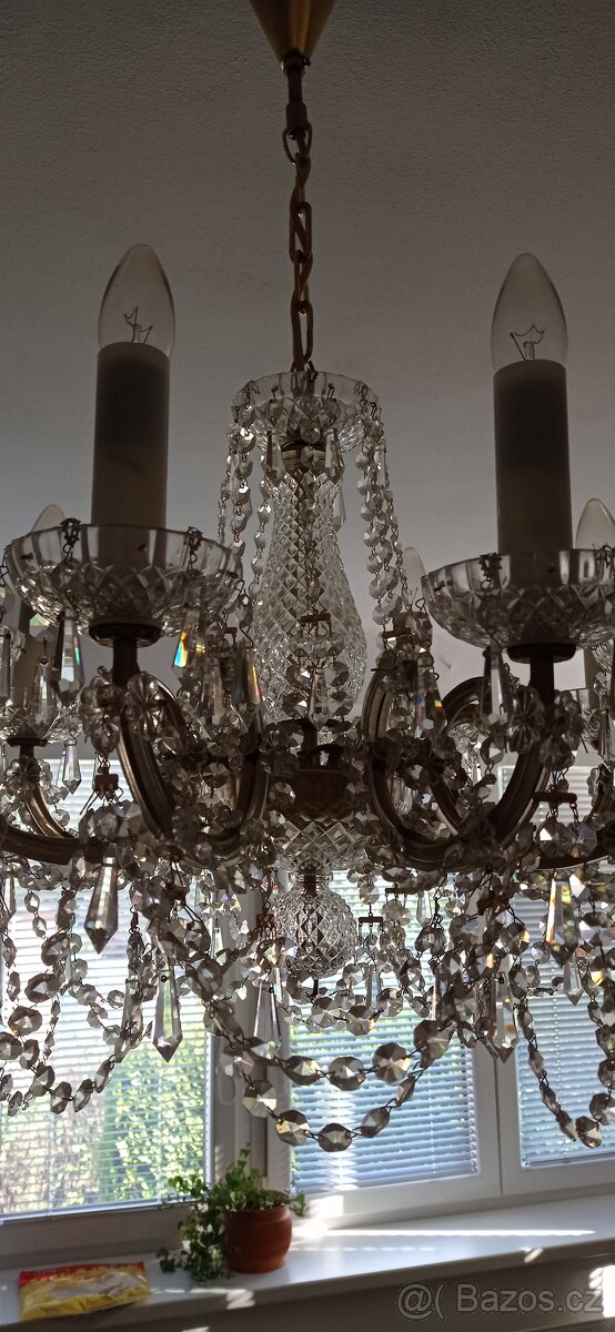Skleněný lustr, 8 ramen, výborný stav, Liberec, při rychlém jednání sleva.