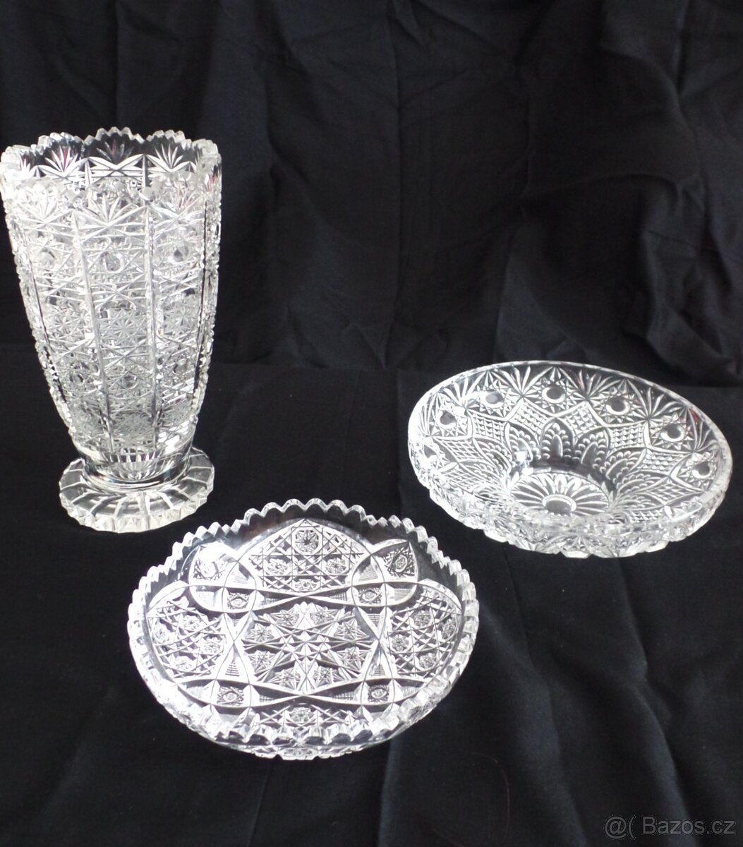 Váza Bohemia Crystal výška 20 cm - 800 Kč, miska uprostřed průměr 16 cm - 500 Kč, miska vpravo průměr 18 cm -200 Kč.
