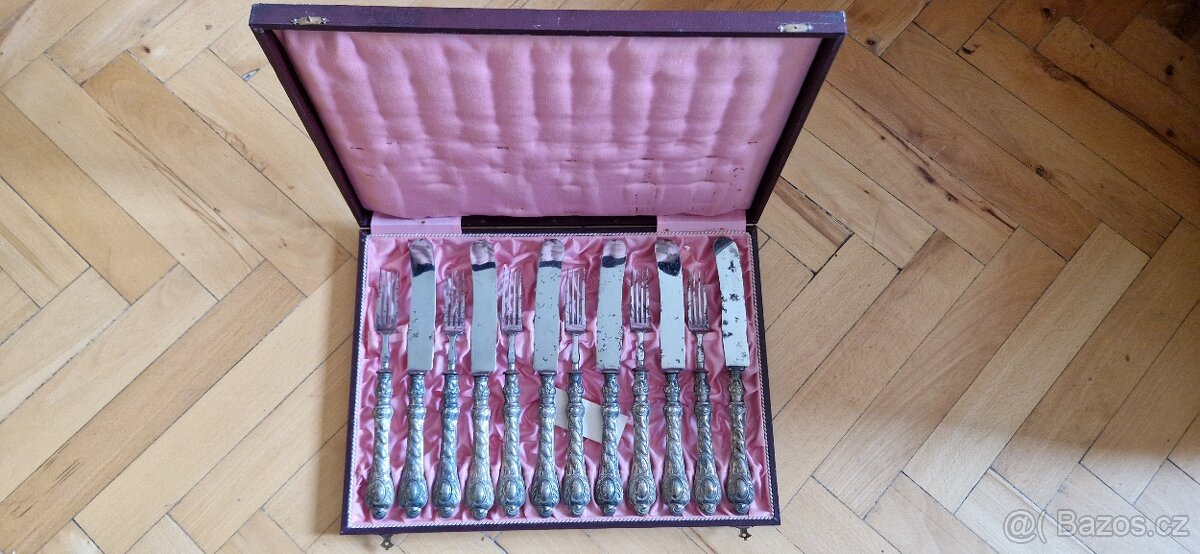 Nabízím starožitnou sadu příborů (6 vidliček + 6 nožů) v původní kazetě.